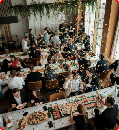 From intimate executive dinners to large company holiday celebrations, we design menus that elevate the experience.